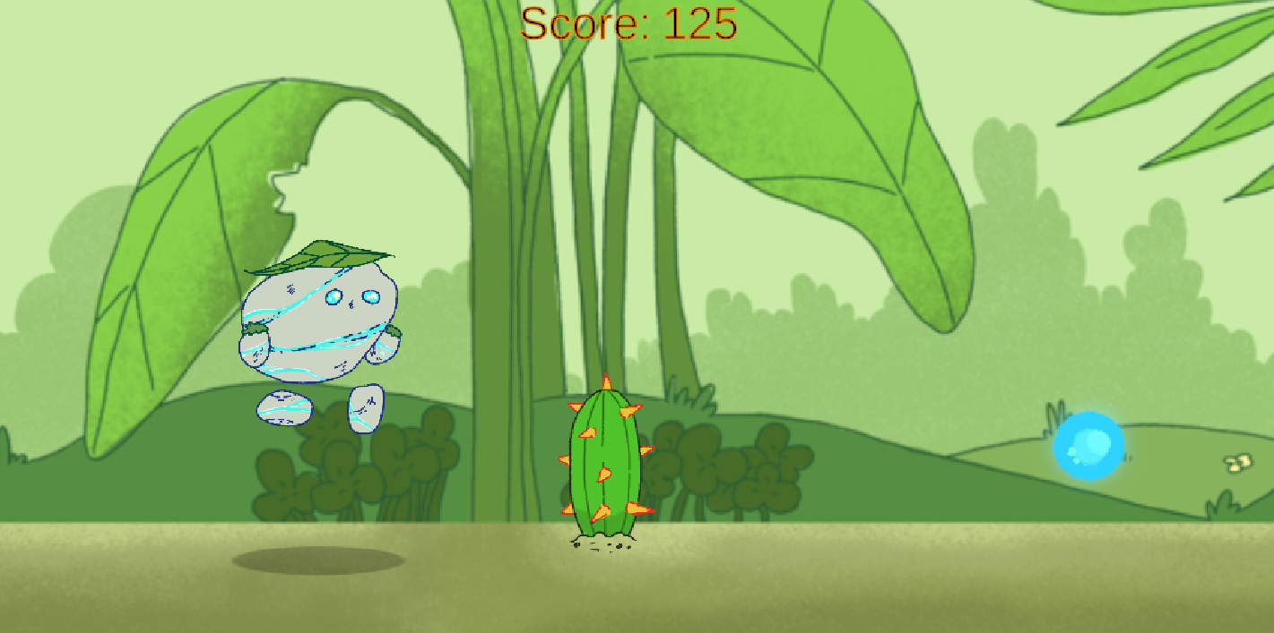 Mash the arrow keys to make Pebble run while avoiding cacti. How far can you go in this cute, garden golem inspired, runner?
